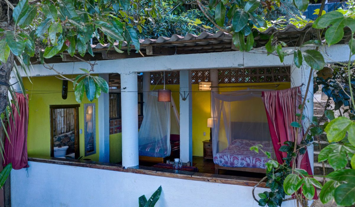 This cozy haven, offering a double bed and a single bed, accommodates up to 3 guests. Unlike the others, it boasts white cement walls that maintain our open-air concept and ocean views. For personal comfort enjoy your own private bathroom with hot shower & towels.