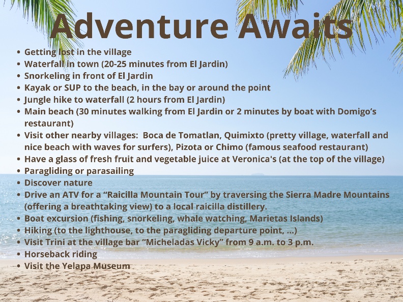 Whether you’re an adventure seeker craving high-energy outdoor experiences or someone who prefers unwinding on the beach with a refreshing drink and a good book, Yelapa has something perfect for everyone.